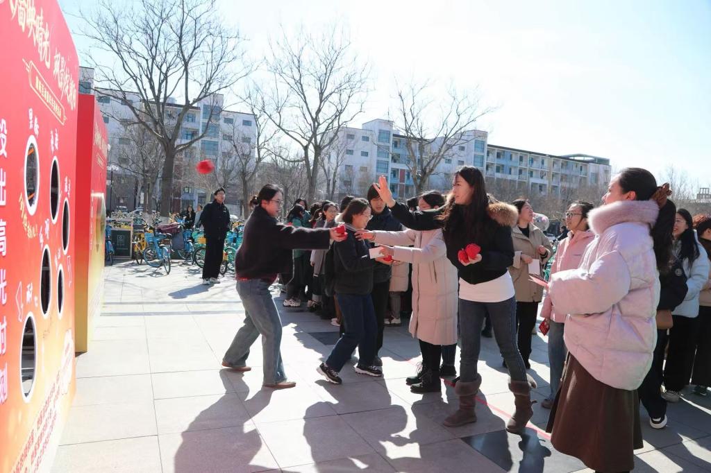 “笑靥映晴光 飒影绽‘朝阳’”趣味互动嘉年华在朝阳广场热闹开场。“投出高光时刻”关卡前,女职工们凝神聚力、精准投掷,喝彩声、欢呼声此起彼伏;“‘她’的闪耀墙”上,一张张彩色便签承载着“桃李满天下”“初心永不改”的真挚寄语,字里行间流淌着教育工作者的坚守与热爱;蒙眼敲鼓、有氧鼓等项目的轮番上演,既增添了节日欢乐,又拉近了彼此距离,充分展现了我校女职工积极向上、奋勇争先的精神风貌。